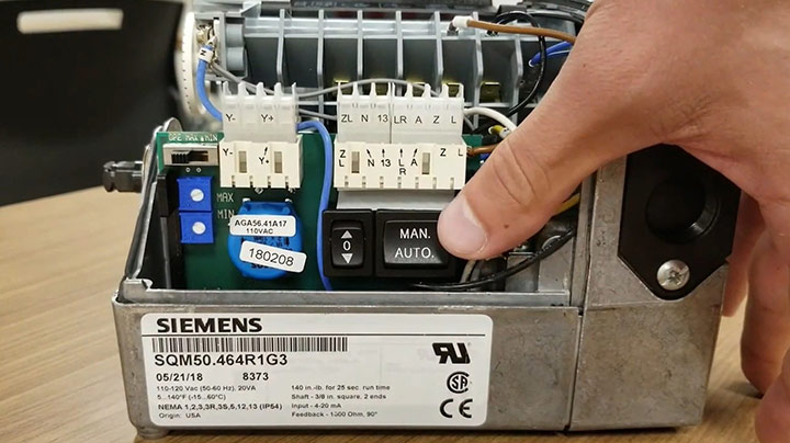 The Siemens SQM5 is available in a wide range of torque ratings from 90 to 400 in-lbs. and running times of 8 to 50 seconds. A selection of exchangeable circuit boards provide a variety of functions including auto/manual selector switch, manual forward/reverse toggle switch, zero and span adjustment, parallel or master/slave operation, split range control, input signal override, and selectable electronic linearization.